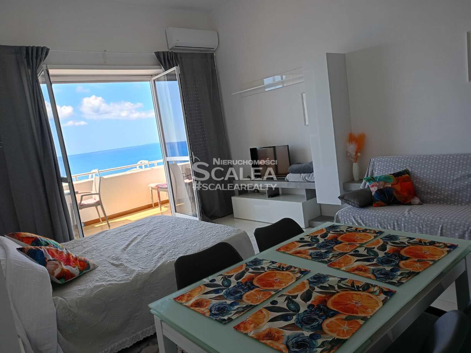 Widok z okna lub z balkonu na błękit morza – marzenie, ale tutaj akurat spełnione.